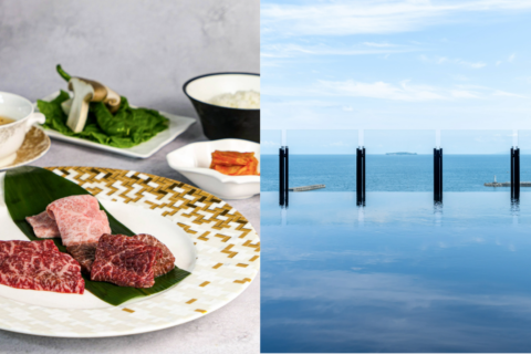 最上階の天然温泉、インフィニティバスで午後の海をゆったりと眺める贅沢。 和牛焼肉...