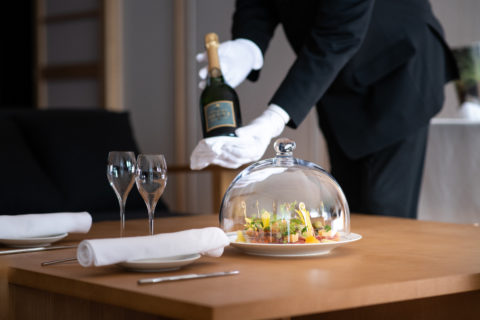 熱海の大海原をテーブルにしたようなロケーションの中で、心を込めたおもてなしのご馳走をどうぞ。地元でとれた新鮮な魚介類を中心に一流のシェフ、料理人たちが腕を振るうスペシャリテ。潮騒や心地よい風も料理を味わい深くするスパイスです。