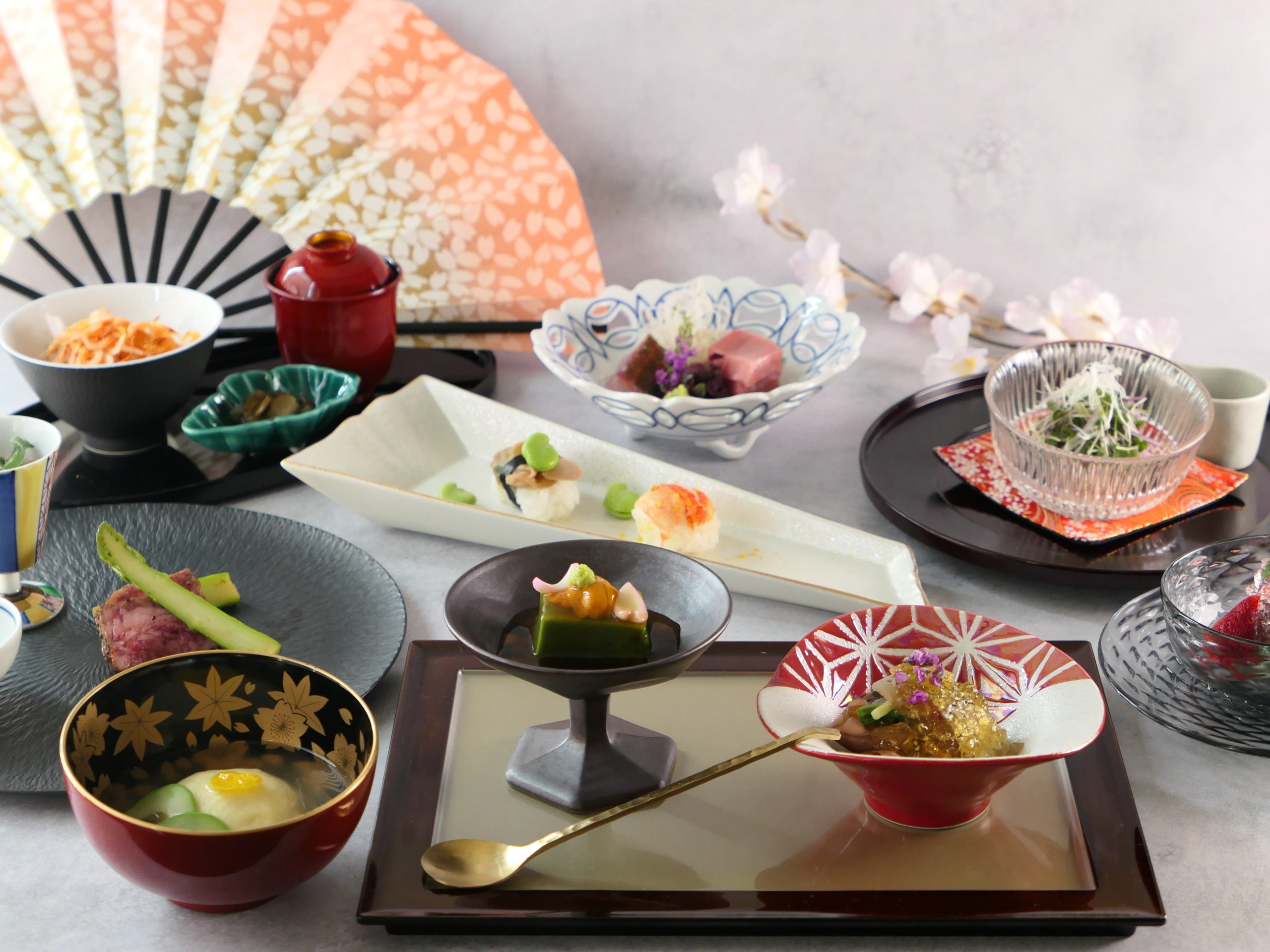 卯月の献立 行く春 花宴会席