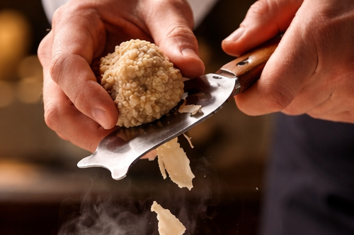 世界でも希少価値の高い白トリュフを贅沢に使用し、芳醇な香りと繊細な味わいをお料理に添えて仕上げました。ひと口ごとに広がる白トリュフならではの深い風味が、リゾートフレンチの魅力をさらに引き立てます。