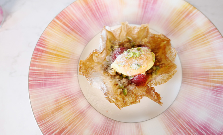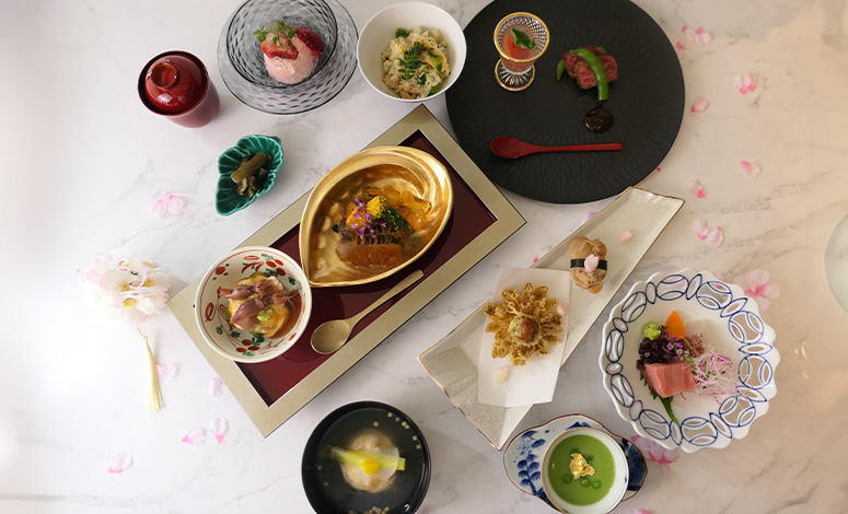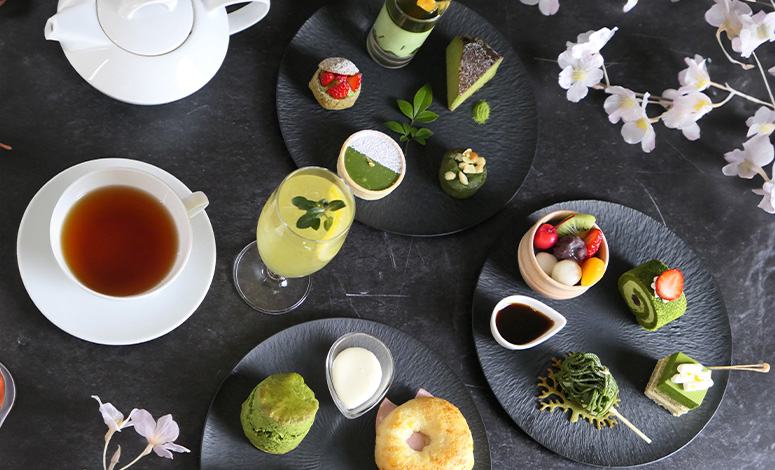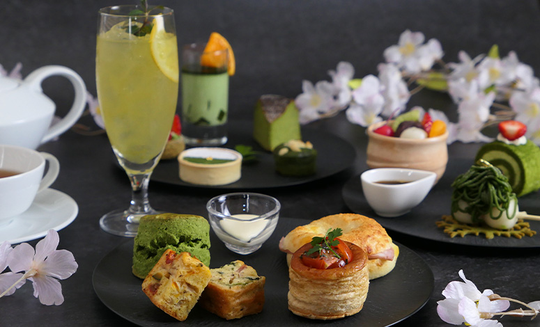 鮮やかな濃緑が印象的な静岡抹茶を主役に、一皿一皿に奥行きを表現。和と洋が調和する、品格ある初夏のアフタヌーンティーをご用意いたしました。