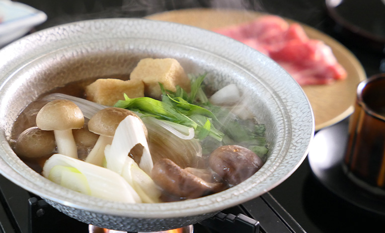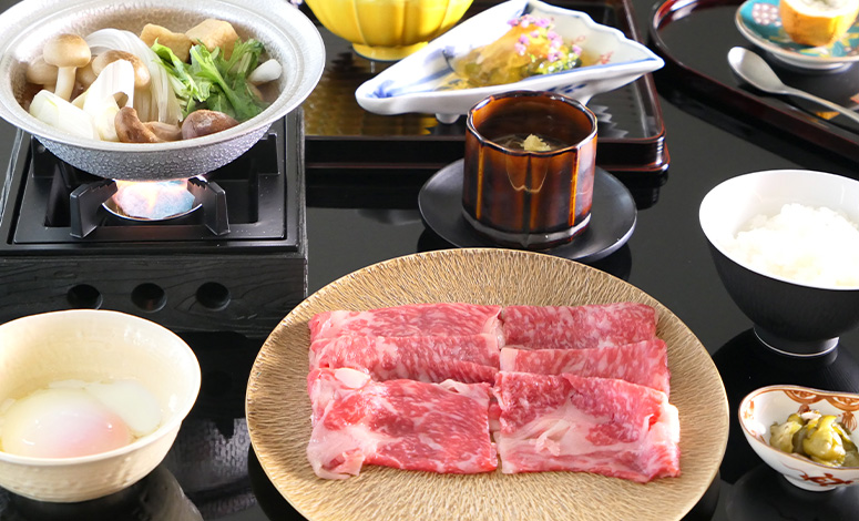牛鍋 国産牛120g、季節の野菜、富士の名月たまご(温玉)