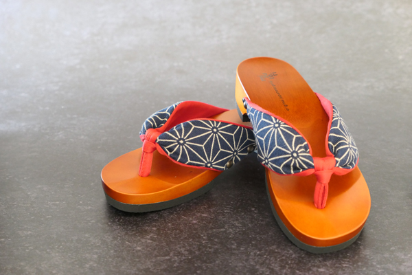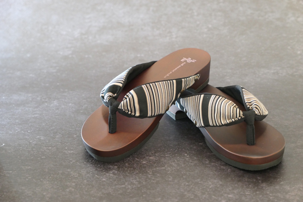 お部屋でご利用いただいている下駄は静岡の地場産業。昭和12年創業の水鳥工業が現代にマッチするような下駄をデザインしたもの。日本古来よりエコな履物として生活の中で溶け込んでいた下駄ですが、mizutoriの下駄は履き心地の良さが自慢。木はマホガニーまたはサペリを使っており、足裏にフィットするように滑らかに削った木地とクッション材入りの鼻緒が特徴です。